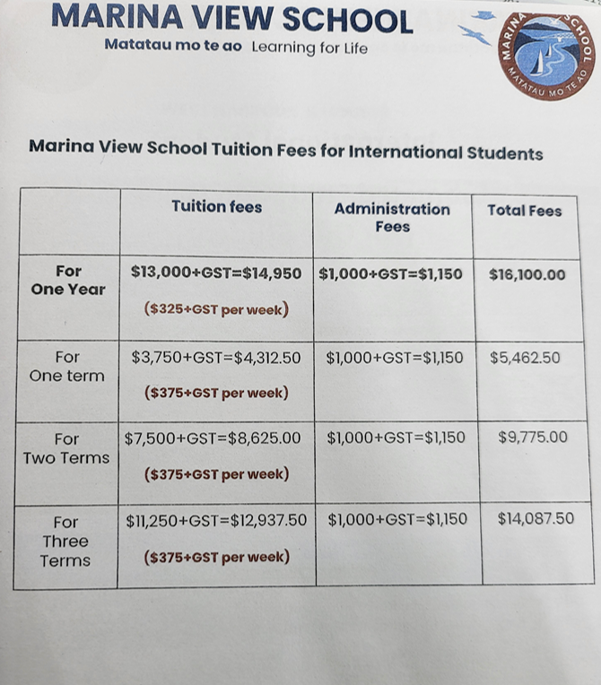 뉴질랜드 초등학교 학비 안내. 오클랜드 마리나뷰 스쿨(Marina View School) 국제학생 기준 1년·텀별 학비를 정리했습니다. 뉴질랜드 초등 조기유학 비용을 한눈에 확인하세요.