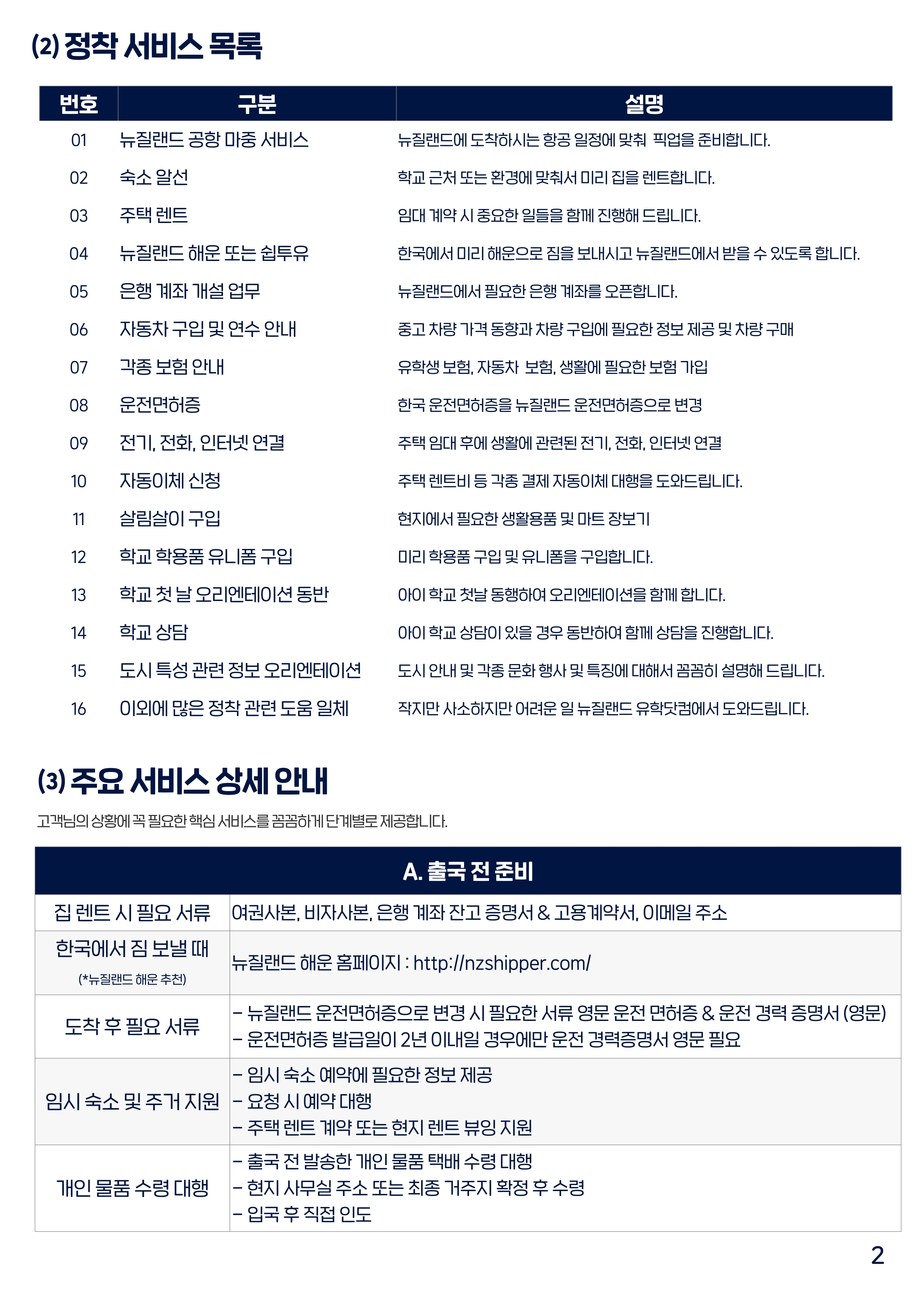 뉴질랜드 정착 서비스 주요 지원