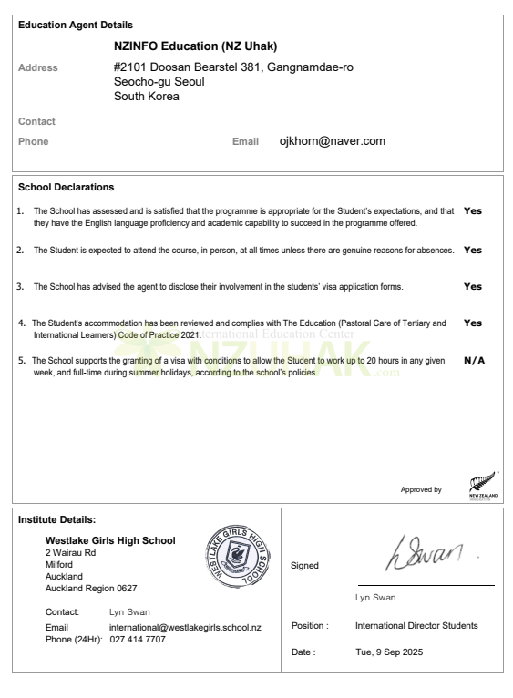 ✔ 공립 명문 여고 / NCEA 정규 과정