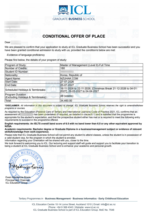 뉴질랜드 ICL 비지니스스쿨 석사 입학 · 학비 · 비자 · 영어과정 연계까지