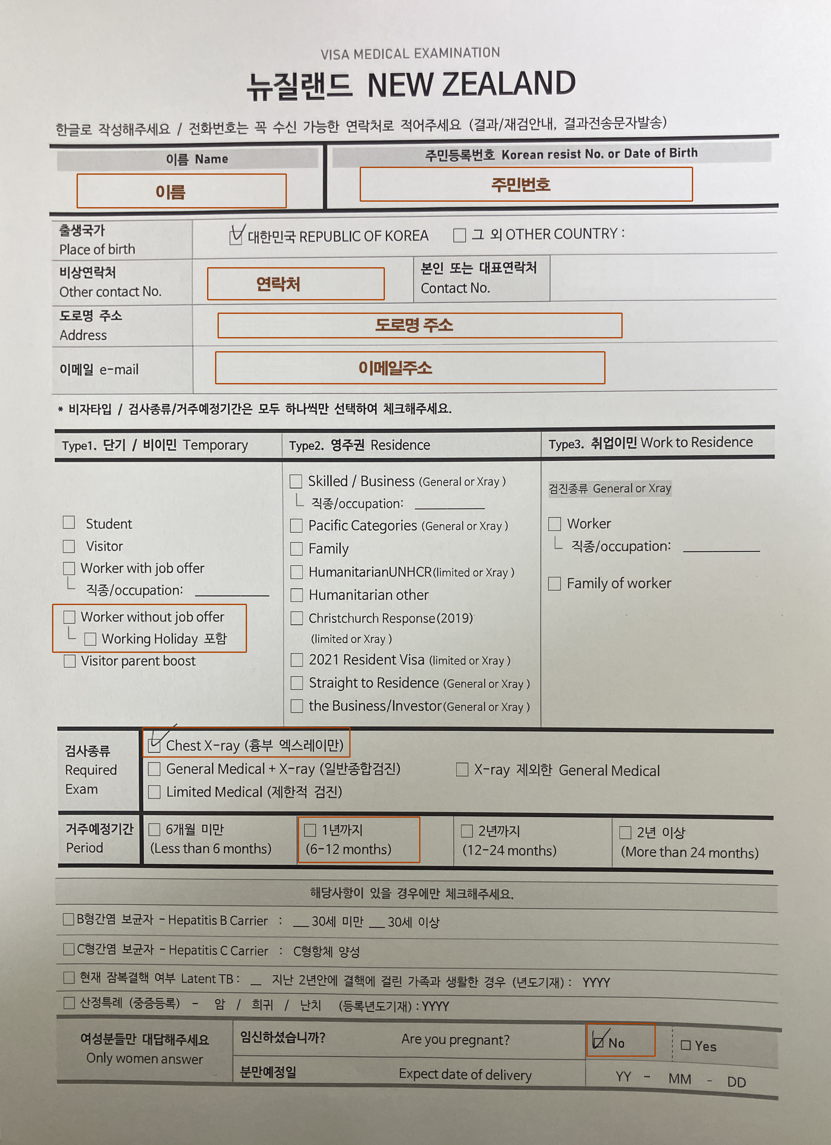 뉴질랜드 워킹홀리데이 신체검사 준비 방법 (흉부 엑스레이 검사 안내)